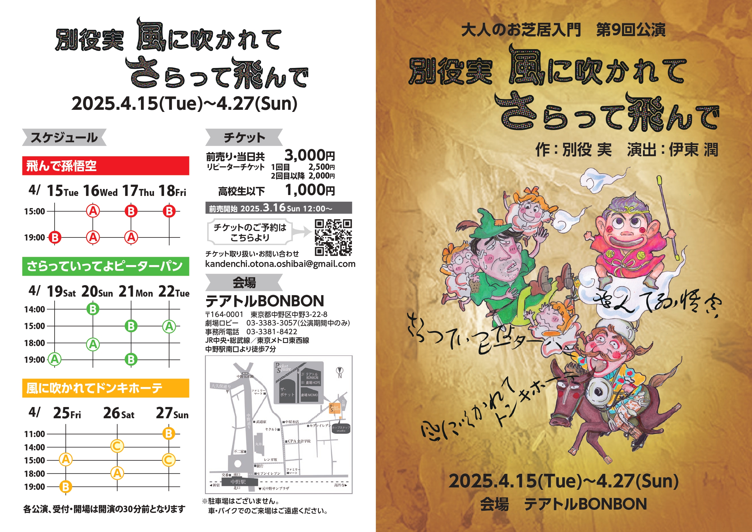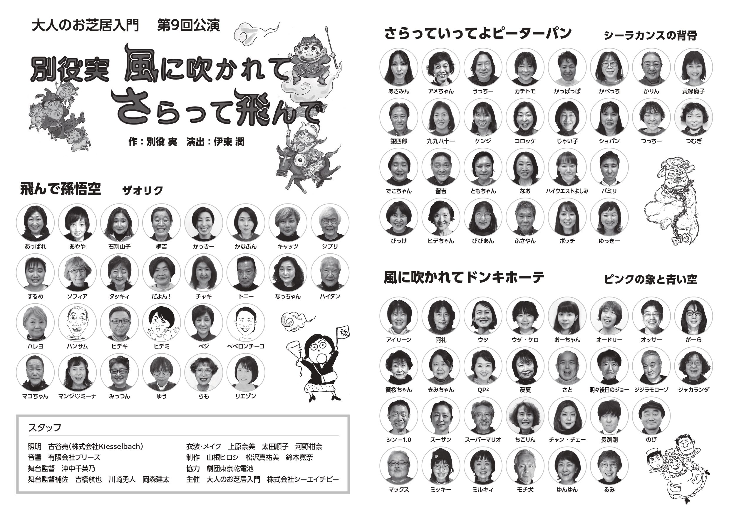 東京乾電池大人のお芝居入門 第9回公演 「別役実 風に吹かれてさらって飛んで」 長丁場の全公演を無事に終えることができました。 ご来場いただき誠にありがとうございました。