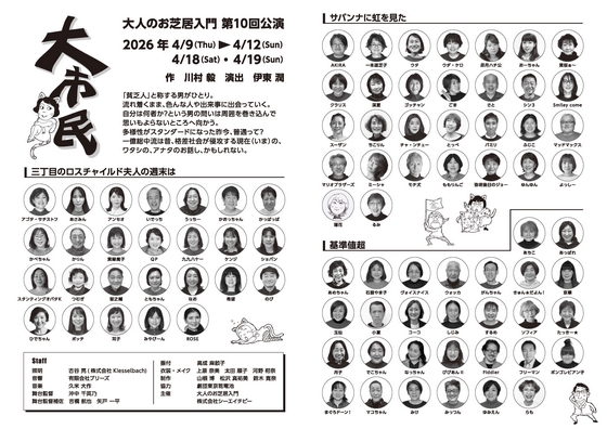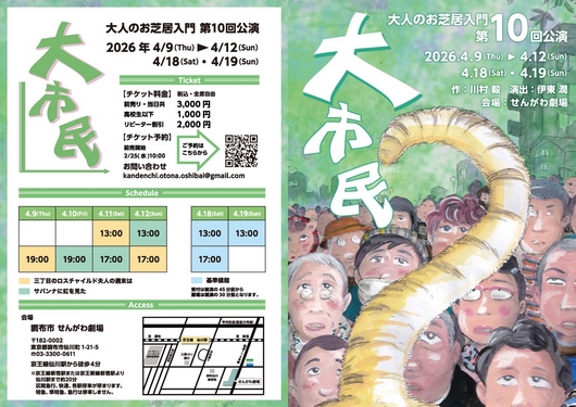 ![]() 東京乾電池大人のお芝居入門 第10回公演 「大市民」 2026年4月9日(木)~12日(日) 18日(土)・19日(日) 調布市せんがわ劇場 Tweets by oshibainyumon |