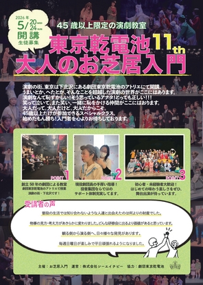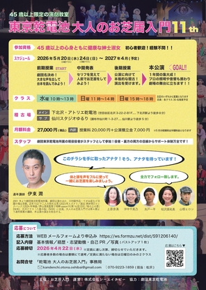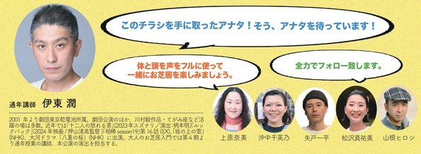 2001年より劇団東京乾電池所属。劇団公演のほか、川村毅作品・てがみ座など活躍の場は多数。近年では「十二人の怒れる男」(2023年スズナリ/演出:柄本明)、「ルックバック」(2024映画、押山清高監督)、「相棒season19」第16話(EX)、「坂の上の雲」(NHK)、大河ドラマ「八重の桜」(NHK)に出演。大人のお芝居入門では第4期より通年授業の講師、本公演の演出を担当する。