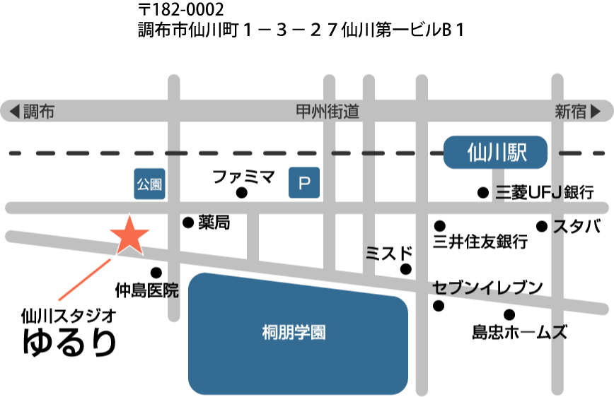 京王線仙川駅より徒歩5分の好立地にある仙川スタジオゆるり。